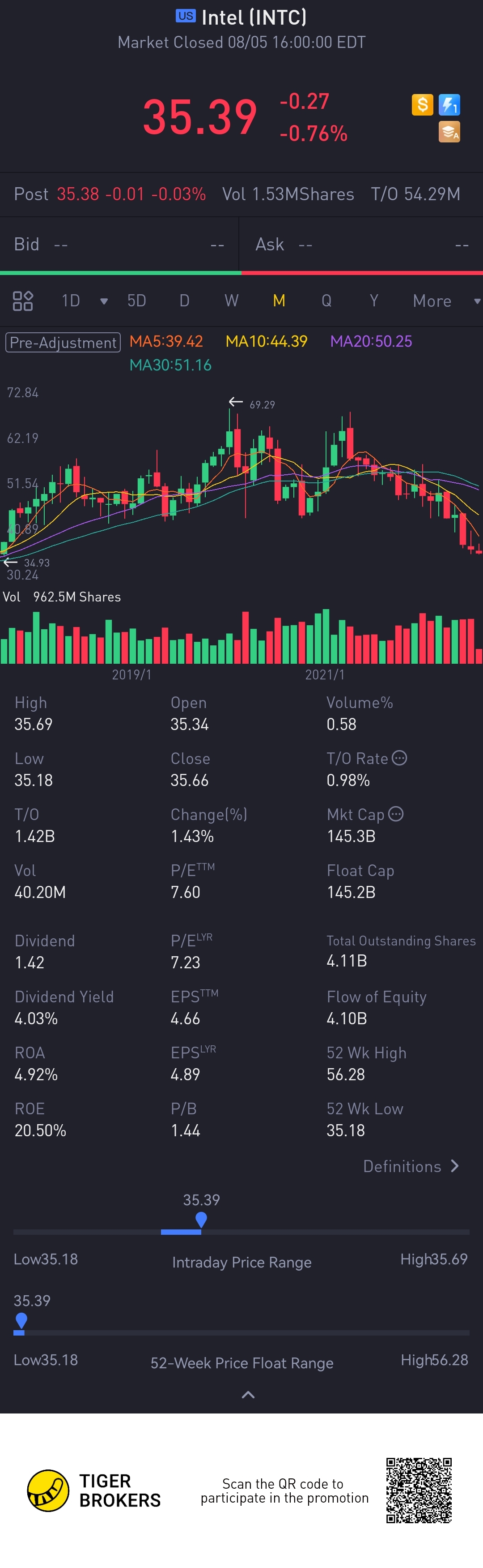 $Intel(INTC)$ With Semiconductor industry booming, its a little bit disappointing that Intel stock price and financial performance is not improving.