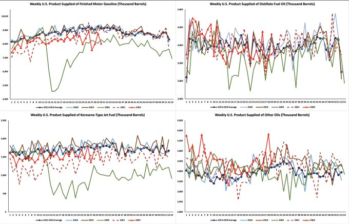 Refinery throughput dropped yet again and was the lowest since May 6/22. And yet, we had a slight build in gasoline stocks. Demand is bad, there are no 2 ways about it.