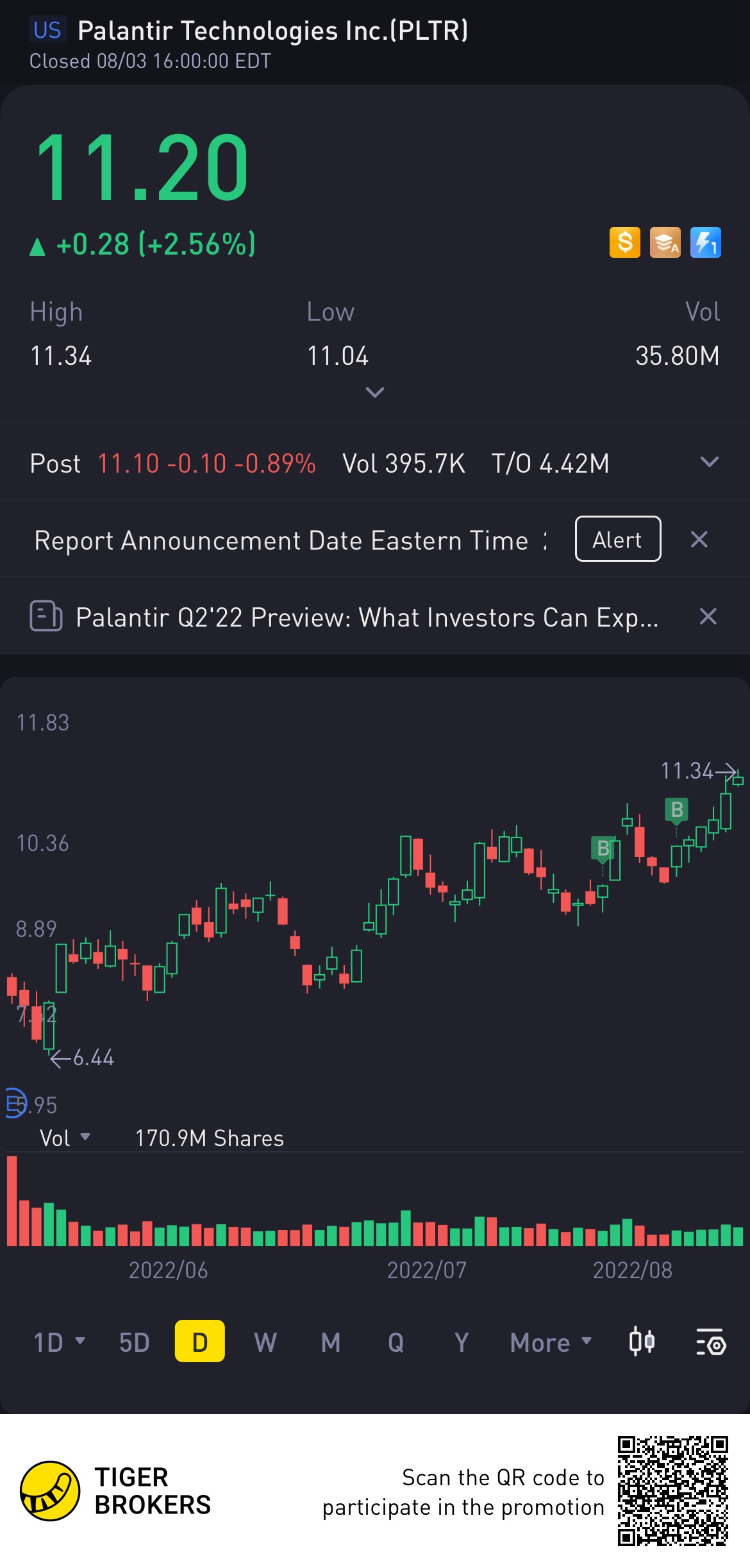 $Palantir Technologies Inc.(PLTR)$August should be a pretty good run for pltr! No fomc, CPI report will be better than the prev mth given the drop in oil prices frm prev highs and pltr earning out on aug 8! Bear rally i guess?!