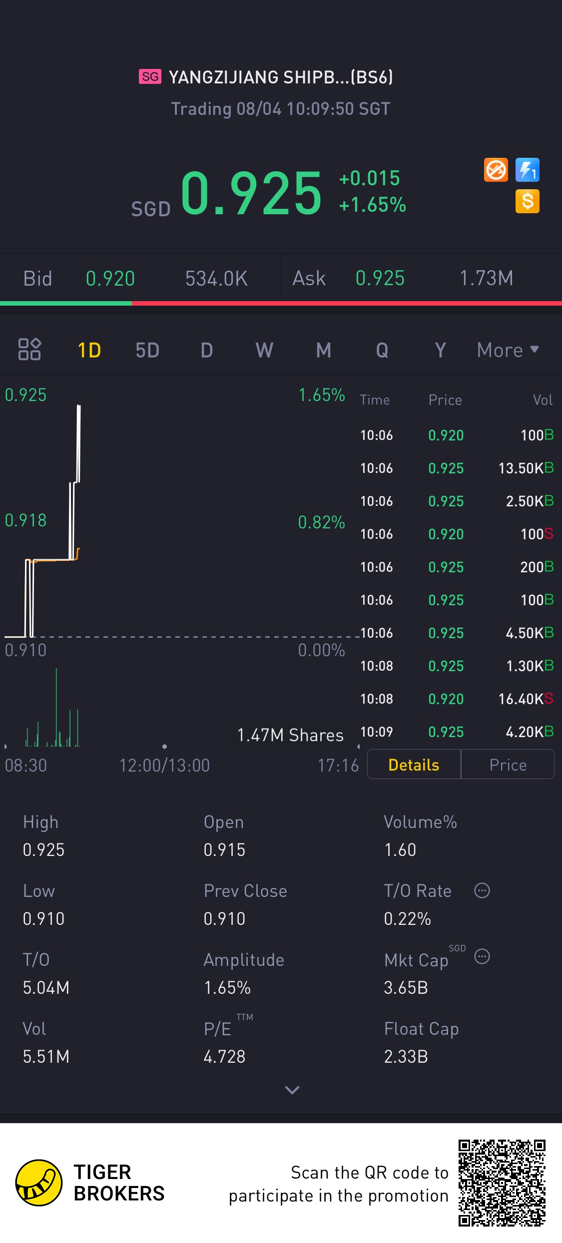 $YANGZIJIANG SHIPBLDG HLDGS LTD(BS6.SI)$Finally moving... my next target 0.97