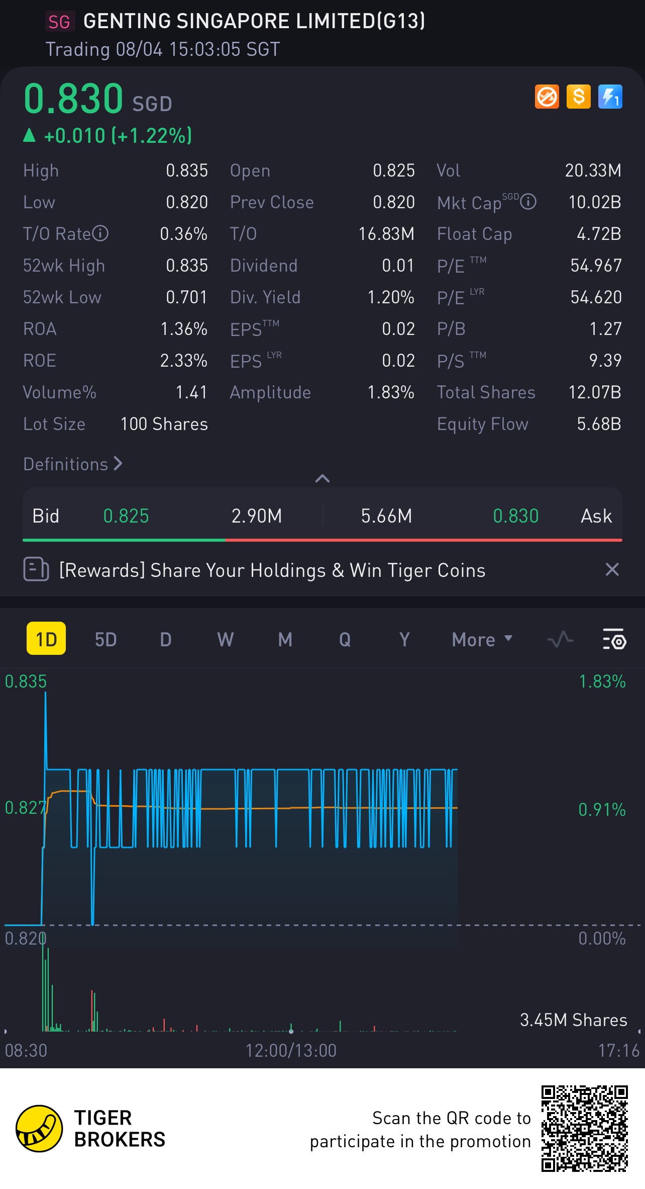 $GENTING SINGAPORE LIMITED(G13.SI)$Waiting 0.90