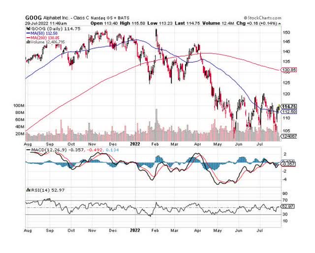 Google released its 2Q-22 earnings and sales figures two days ago and, sadly, failed to achieve the slightly higher earnings-per-share and sales projections.