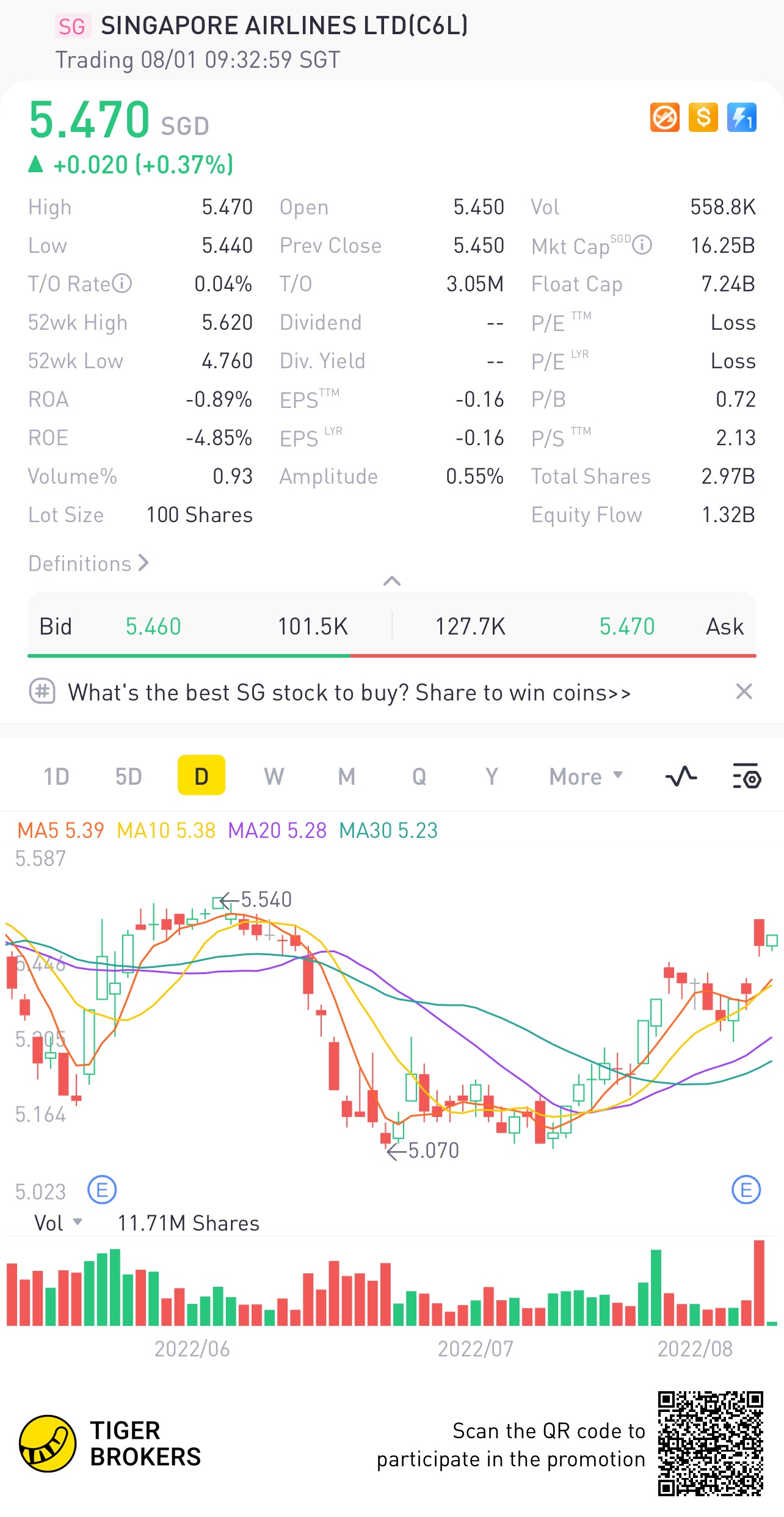 $SINGAPORE AIRLINES LTD(C6L.SI)$$6 soon?
