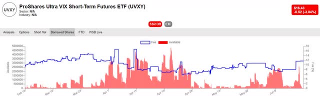 Borrowing costs to initiate a short position typically range anywhere between 2% and 12% on an annualized basis depending on the supply and demand for UVXY. While this is much cheaper than buying put options, there is a risk that an investor would need to post additional collateral if UVXY surges due to the VIX increasing. This has happened before, and investors should not think it won't happen again.