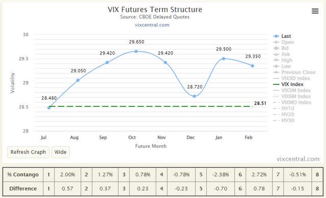 If an investor would rather initiate a short position, it can do so at a relatively cheap rate. However, there is a significant risk that if the VIX spikes due to another unforeseen event, a short position would require additional collateral or it would be closed out.