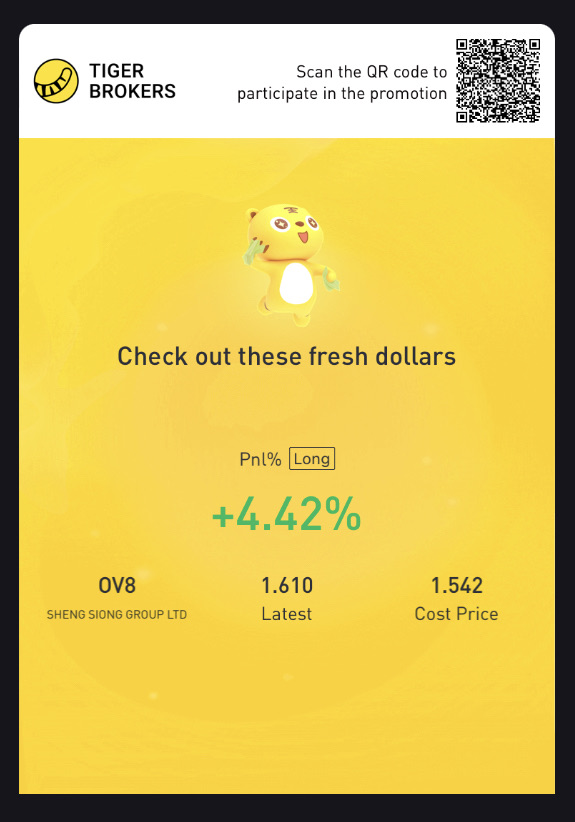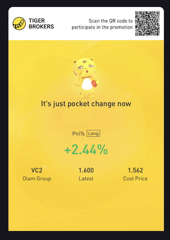 My older love $Olam Group(VC2.SI)$$SHENG SIONG GROUP LTD(OV8.SI)$started to green already [love you]