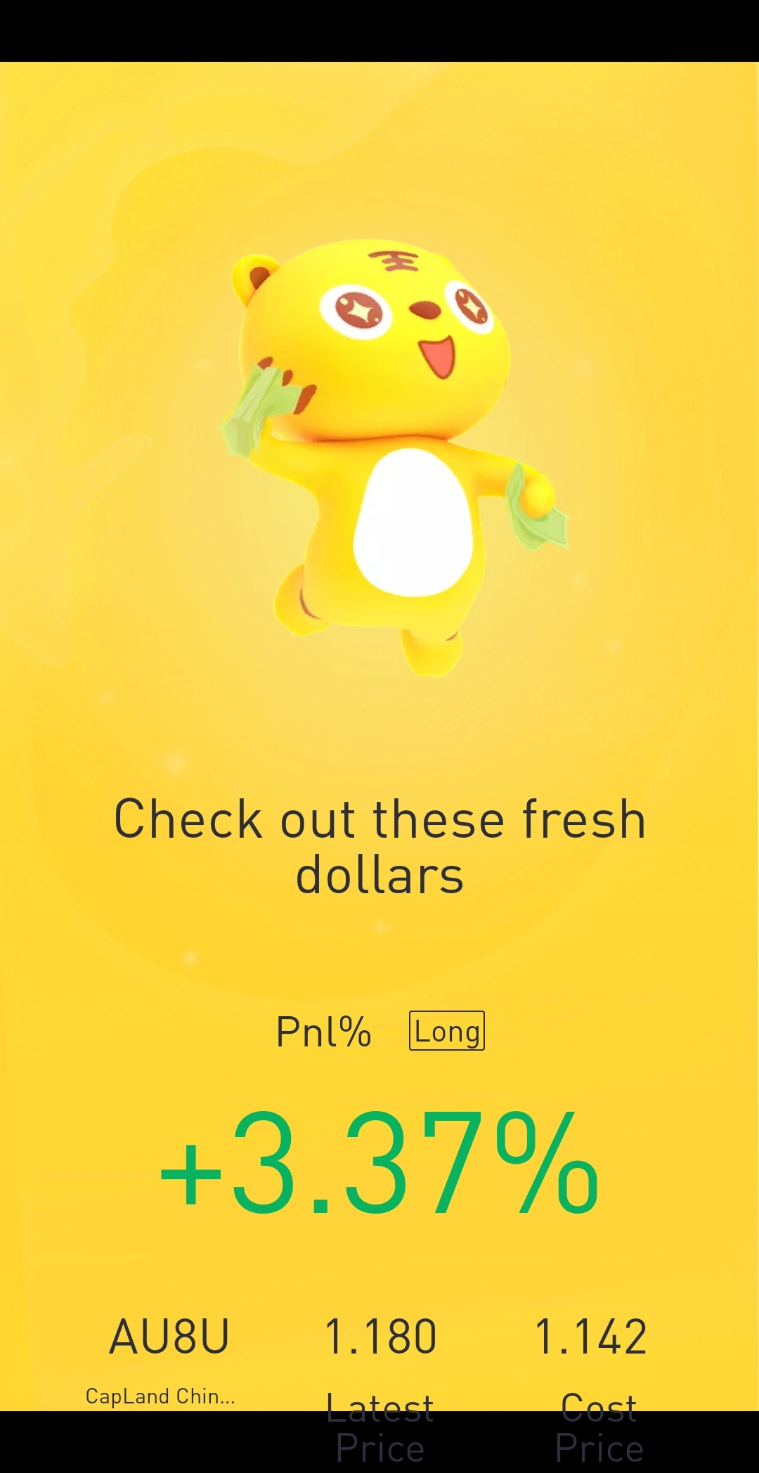 $CapLand China T(AU8U.SI)$ i am still holding on to it for dividend income and potential capital gains, dividend yield is around 7%.