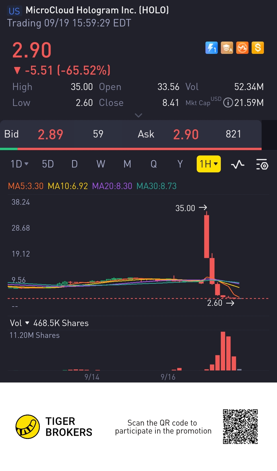 $MicroCloud Hologram Inc.(HOLO)$what a day for this stock, lucky for the one's who entered at 10 dollars and sold at 35 dollars.