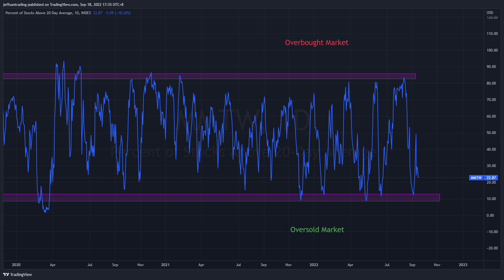 % of Stocks Above 20 DMA = 22.87% (-38.12%)