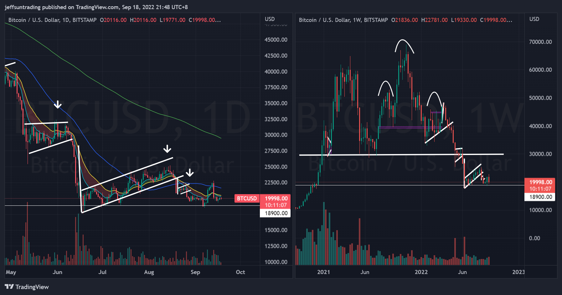 The level of support to watch for $BTCUSD this week remains at $18,900, a immediate support before reaching its year till date low $17,590.