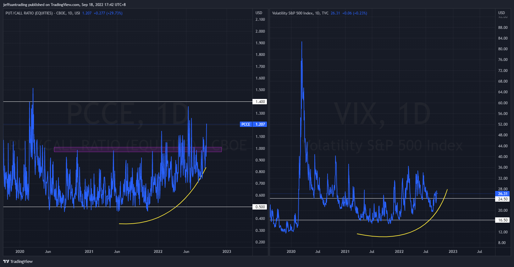 PCCE (Put/Call Ratio Equity) & VIX (Volatility S&P 500) – Persistence in Reflection of Imminent Major Sell Off Ahead