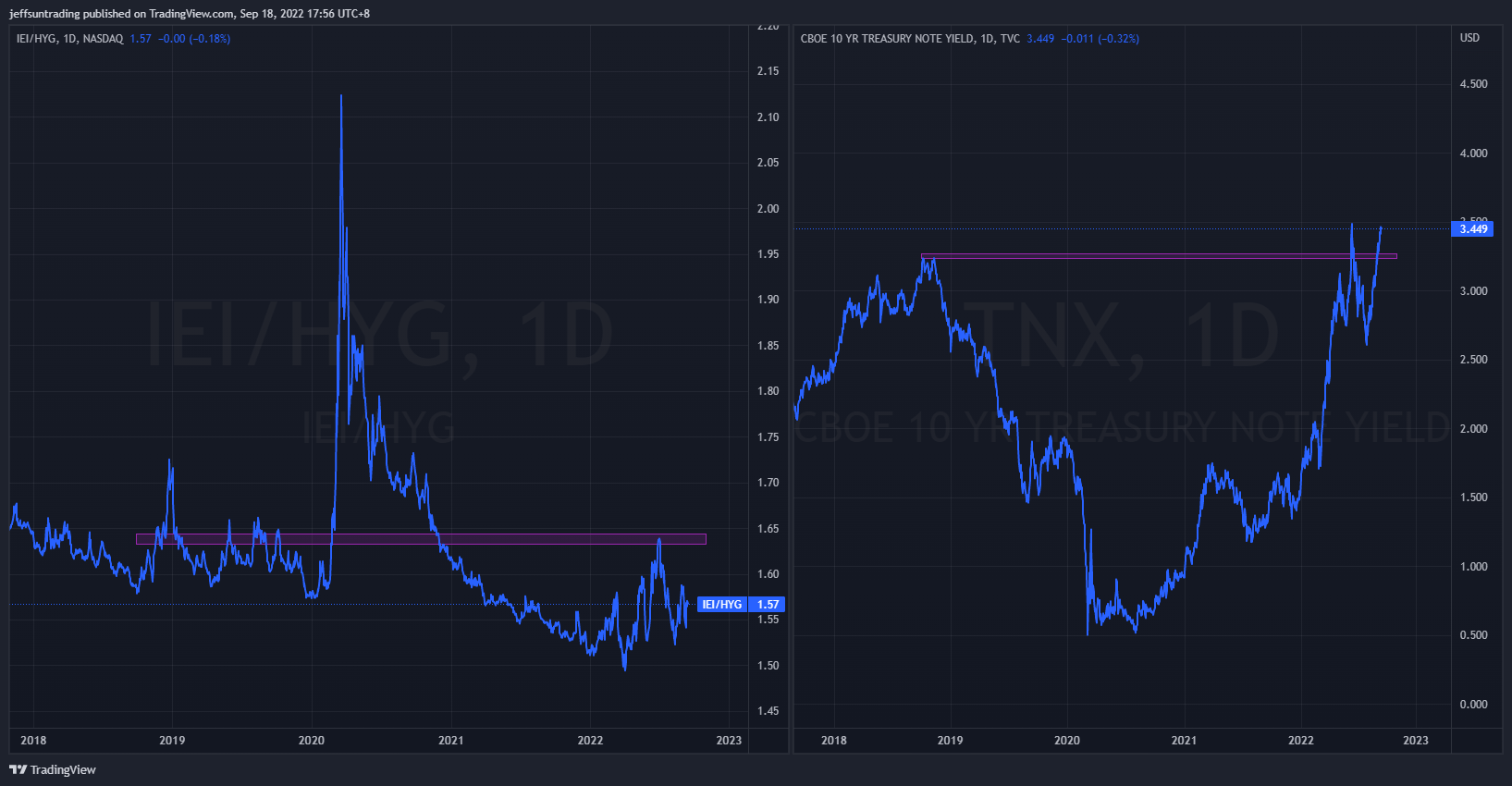 $iShares 3-7 Year Treasury Bond ETF(IEI)$ $iShares iBoxx $ High Yield Corporate Bond ETF(HYG)$