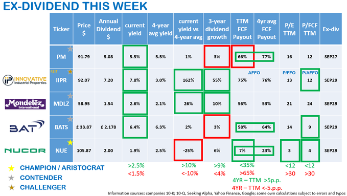 3 Contenders: BATS$BR.AMER.TOB.(BATS.UK)$ ,MDLZ$Mondelez(MDLZ)$ and PM$Philip Morris(PM)$ will pay dividend between Sep 27 and Sep 29.