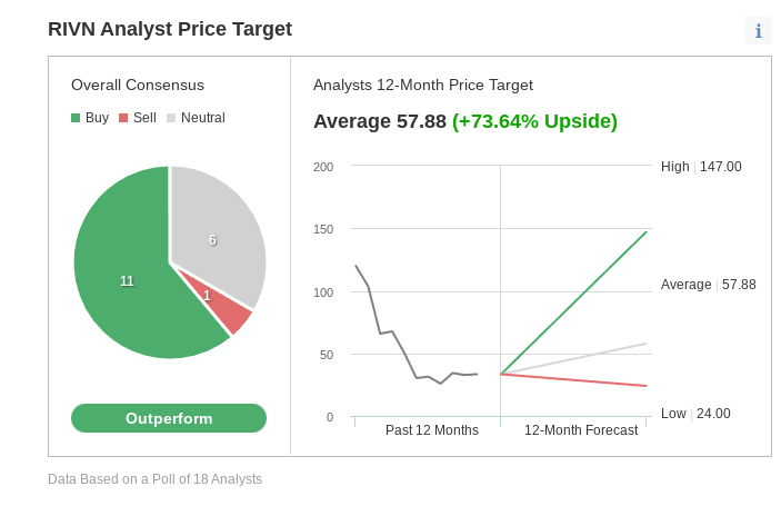 Furthermore, most Wall Street analysts polled byInvesting.comsee Rivian stock as undervalued after this year's slump. More than 60% of those surveyed rate the stock as Outperform, with their consensus price target showing a nearly 74% upside potential.