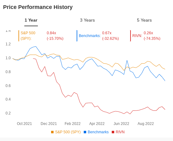- Rivian weakness this year is much worse than the 30% decline in the Global X Autonomous & Electric Vehicles ETF