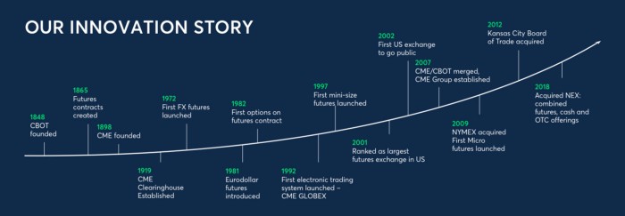 CME was founded in 1898 as an agricultural commodities exchange, and since 2002 CME is a public company with the ticker $CME. In 2008, it merged with CBOT to form the CME Group.