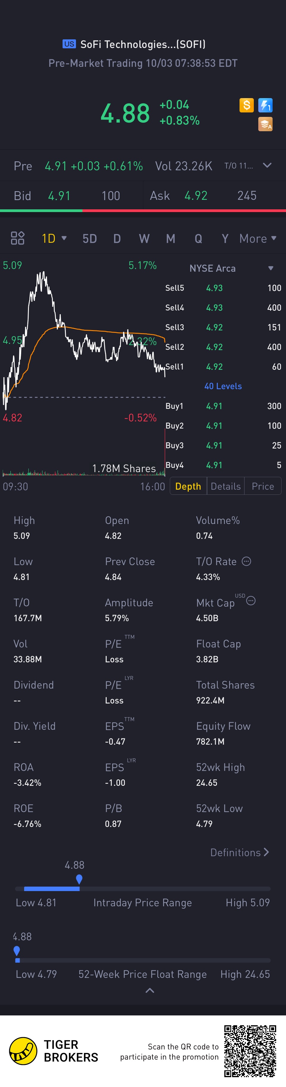 $SoFi Technologies Inc.(SOFI)$Goingbelow 5 [Speechless]