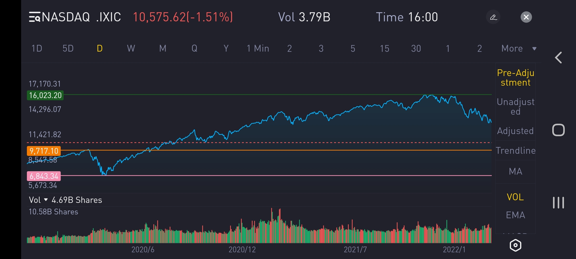 If there's a black swan event that crashes the markets, I am taking 6843 (COVID bottom low) as the lowest low. That's 35% and 57% down from current and ATH NASDAQ levels, respectively.