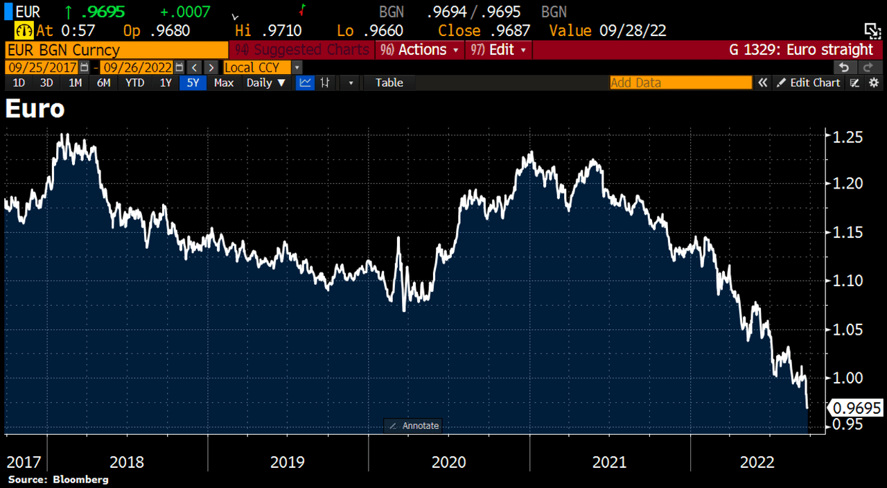 In the very big picture, the U.S. Dollar (USDU) has been appreciating against almost all other fiat currencies since 2008. Back then, the euro (FXE) was trading around 1.60 USD against the U.S. Dollar at its peak. Currently, the eurozone currency is trading at just 0.98 USD, a loss of almost 40% in just over 14 years.