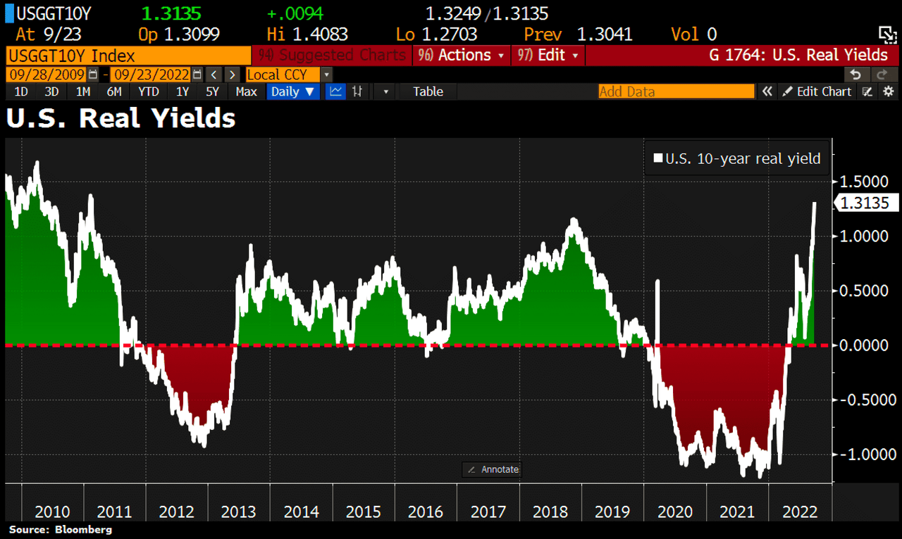 Consistently, 10-year U.S. real rates have risen to 1.31%, the highest level since 2011.