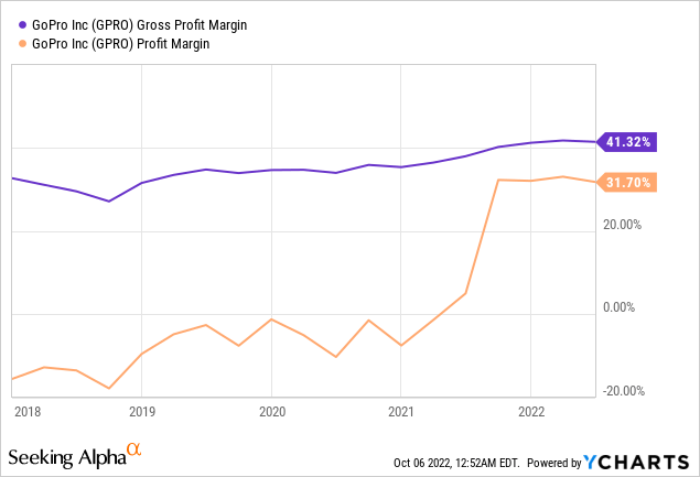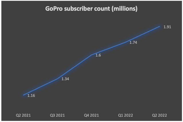 However, now GoPro is a different company from a few years ago. The company boasts better image quality, use cases, and a new subscription base. The subscription service continues to be a fast-growing segment of the company ending Q2 2022 with 1.91 million GoPro subscribers, an increase of 65% over the same period last year. In addition, the subscription service is the company's most profitable product, recording 70-80% gross margins. Hence a more extensive subscription base helps the company to scale fast and elevate its margin upwards.