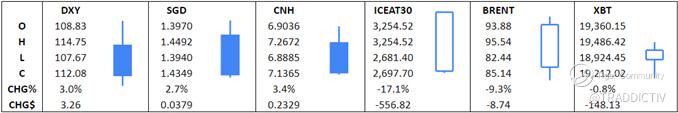 - Consumer Price Index (CPI) data for all items released on 13th September slowed for a second straight month, inflation data 12-month ending August was at 8.3% dropping from 8.5% the prior month as energy prices continued to decline. Core Inflation (all items less food and energy) increased over the last 12 months at a rate of 6.3%, up from June and July’s 5.9% gain to move off the six-month low. The USDX closed the day at 109.81 with a gain of 1.48%.