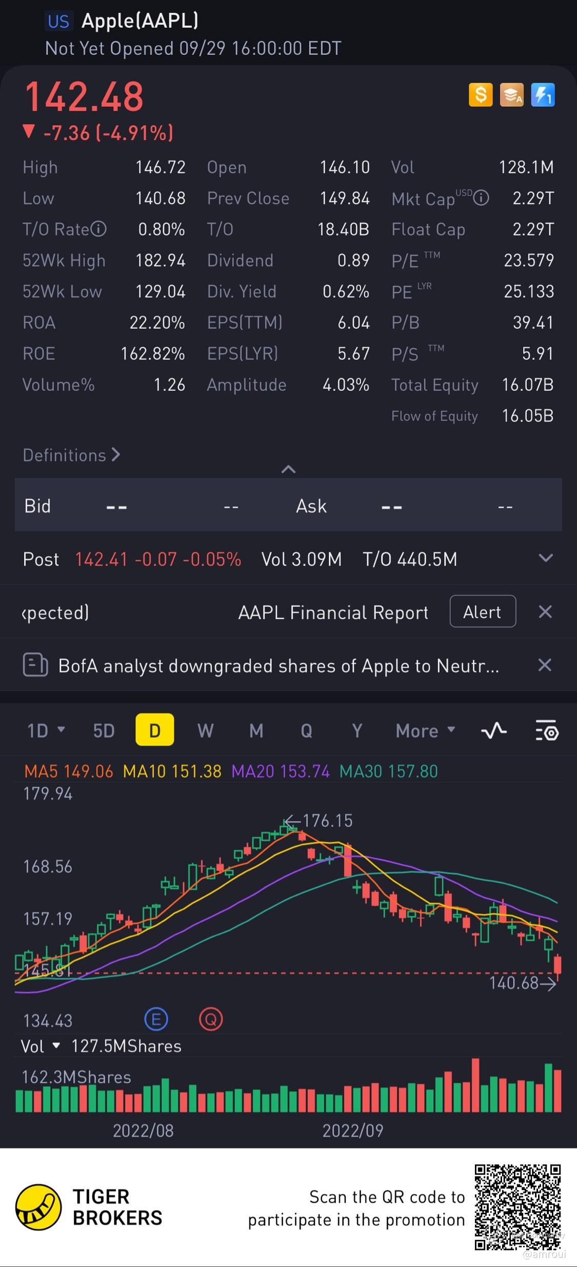 $Apple(AAPL)$ Strong dollar, weakening consumer demand, uncertain political impact from China market exposure.. lots of reason to be bearish. Buy the dip? Could we see Apple go down to $120?