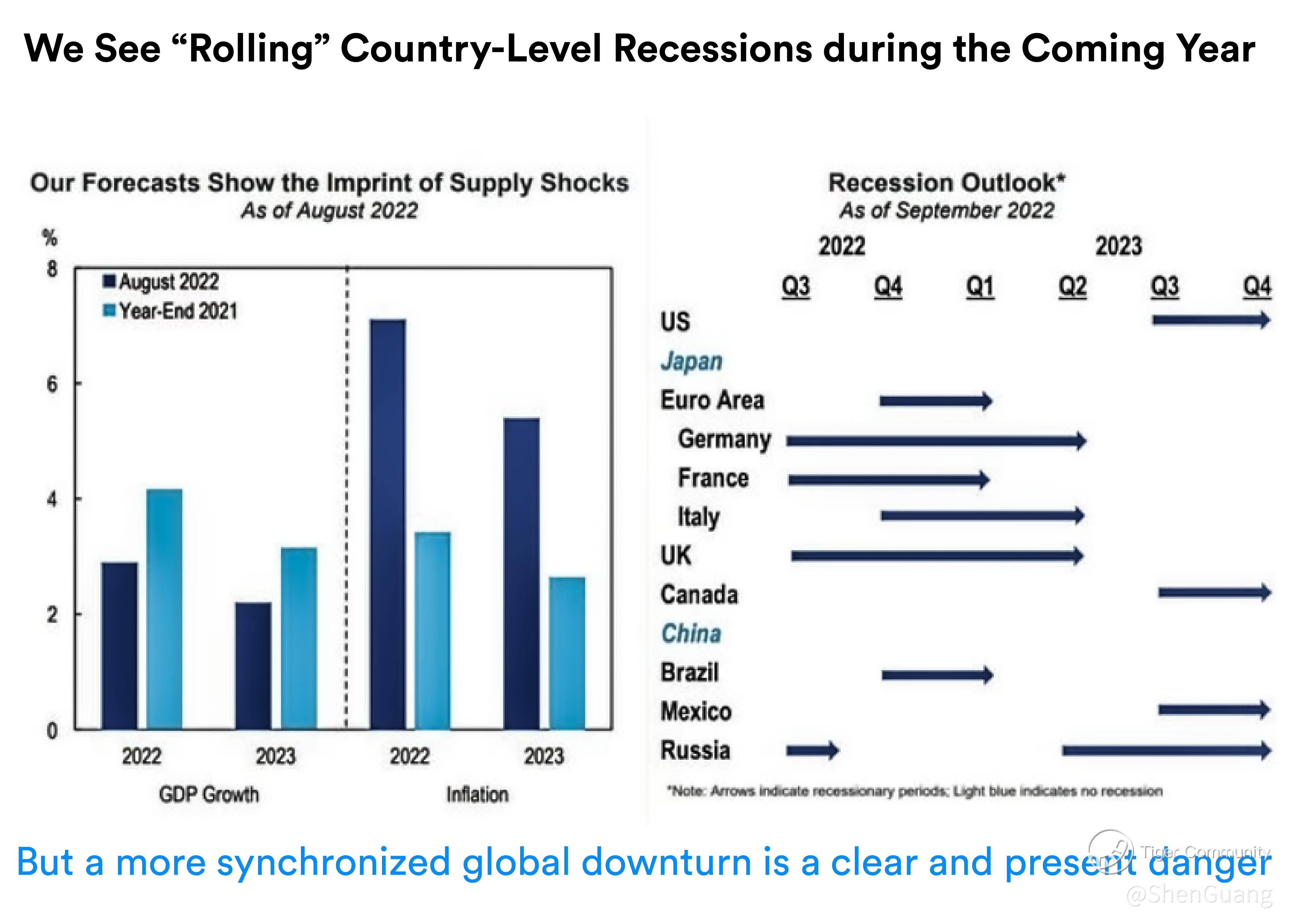 The researchers, interestingly, estimate the U.S. to be entering a "recessionary period" from Q3 of 2023 onwards, while Germany and UK are both indicated to already be in recession.