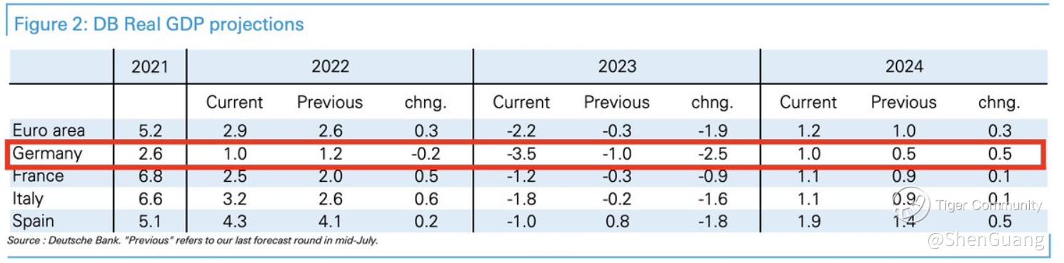 Also, Deutsche Bank indicates that its homeland Germany will likely be bearing the brunt of GDP shrinkage in the Eurozone in the next year.