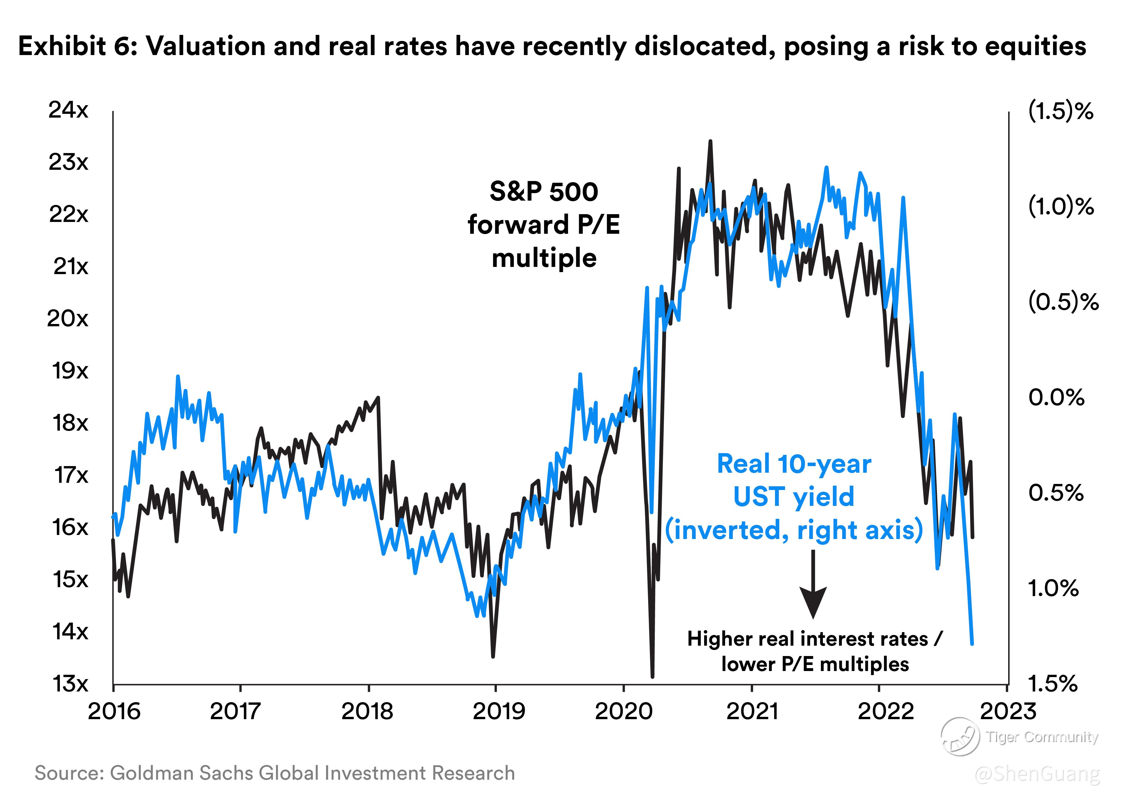 Goldman Sachs ($Goldman Sachs(GS)$) also indicated last week a familiar theme from earlier articles about "high-conviction" investor favourite stocks: the price ratio multiples are rapidly crumbling, as exemplified in the downward trend in the S&P 500's forward multiples.
