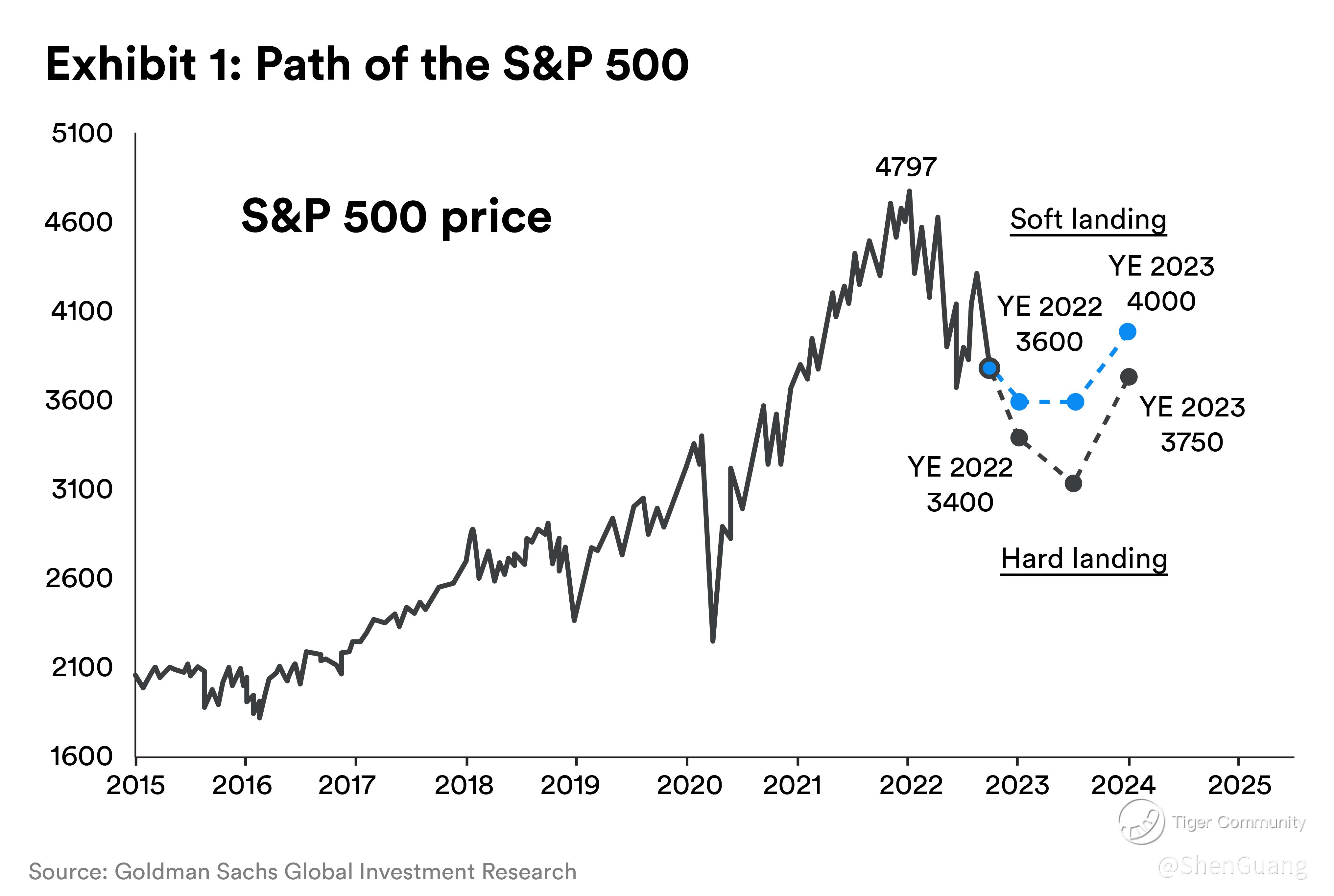 With regard to the S&P 500, Goldman Sachs also had a similar assessment: the index is expected to end 2022 roughly 1.6% away from the current day's level in a "soft landing" scenario and at 3400 in the "hard landing" scenario. Both scenarios see a recovery in 2023 which would still be far below highs seen earlier this year.