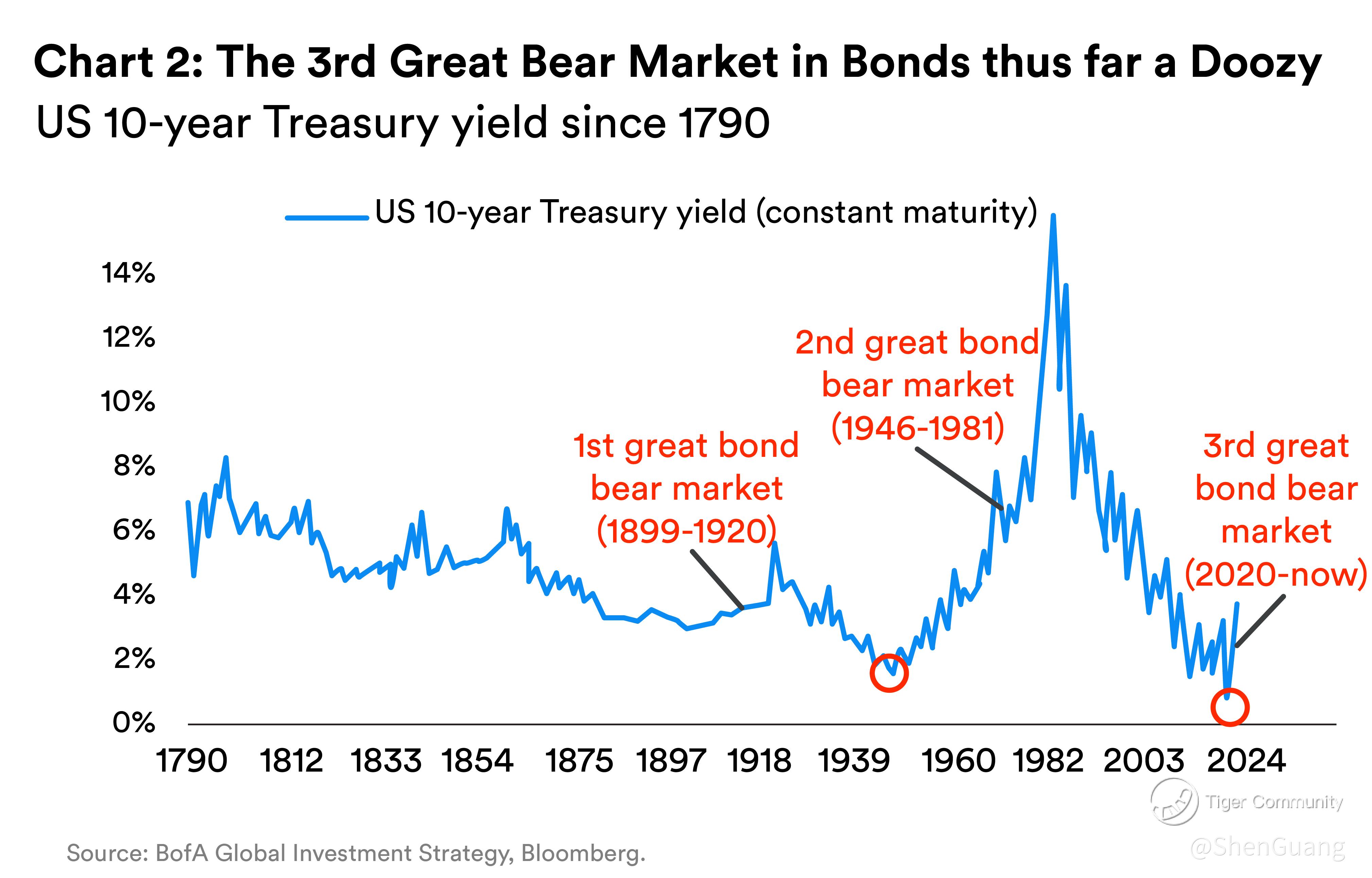 As of right now, the US 2-Year Treasury bond yields a better return than the S&P 500. Despite this, in a report released by the same team subsequent to the FMS, BofA indicates that current outlook for the bond market is a record third instance of a "bond bear market" expected to last until 2024. The primary reason for this is that bonds deliver inflation-beating returns. Even at current yields relative to the US market, these returns are not being considered to be strong enough returns to beat the net effect of inflation.
