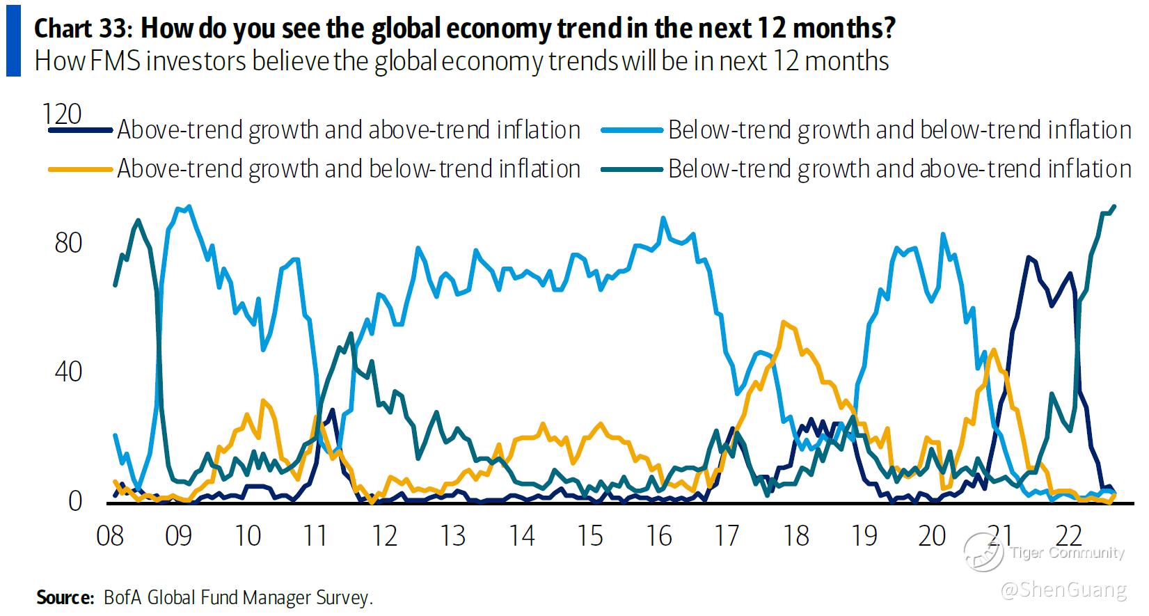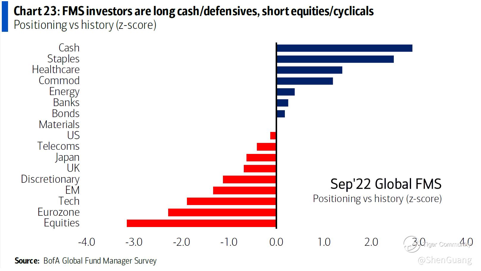For its September update of its iconic Fund Manager Survey (which has been covered before), Bank of America ($Bank of America(BAC)$), 212 panellists managing $616 billion in Assets Under Management (AUM) participated and provided some fascinating (and prescient) insight.