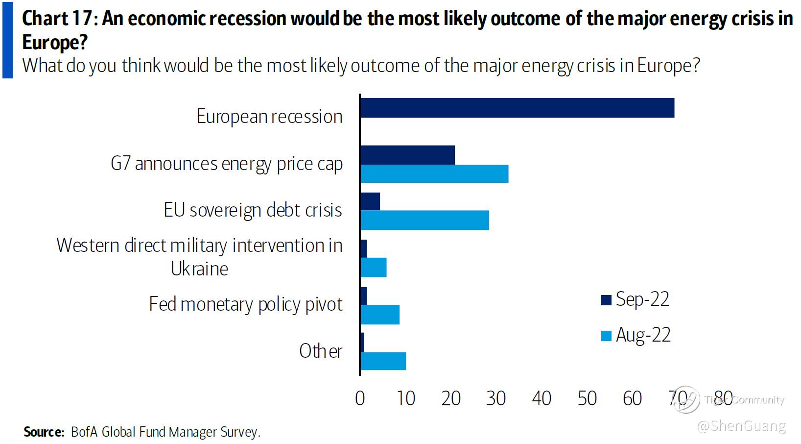With regard to the Eurozone, the survey records a recession to be most likely as a result of the energy crisis (as predicted in previous articles)