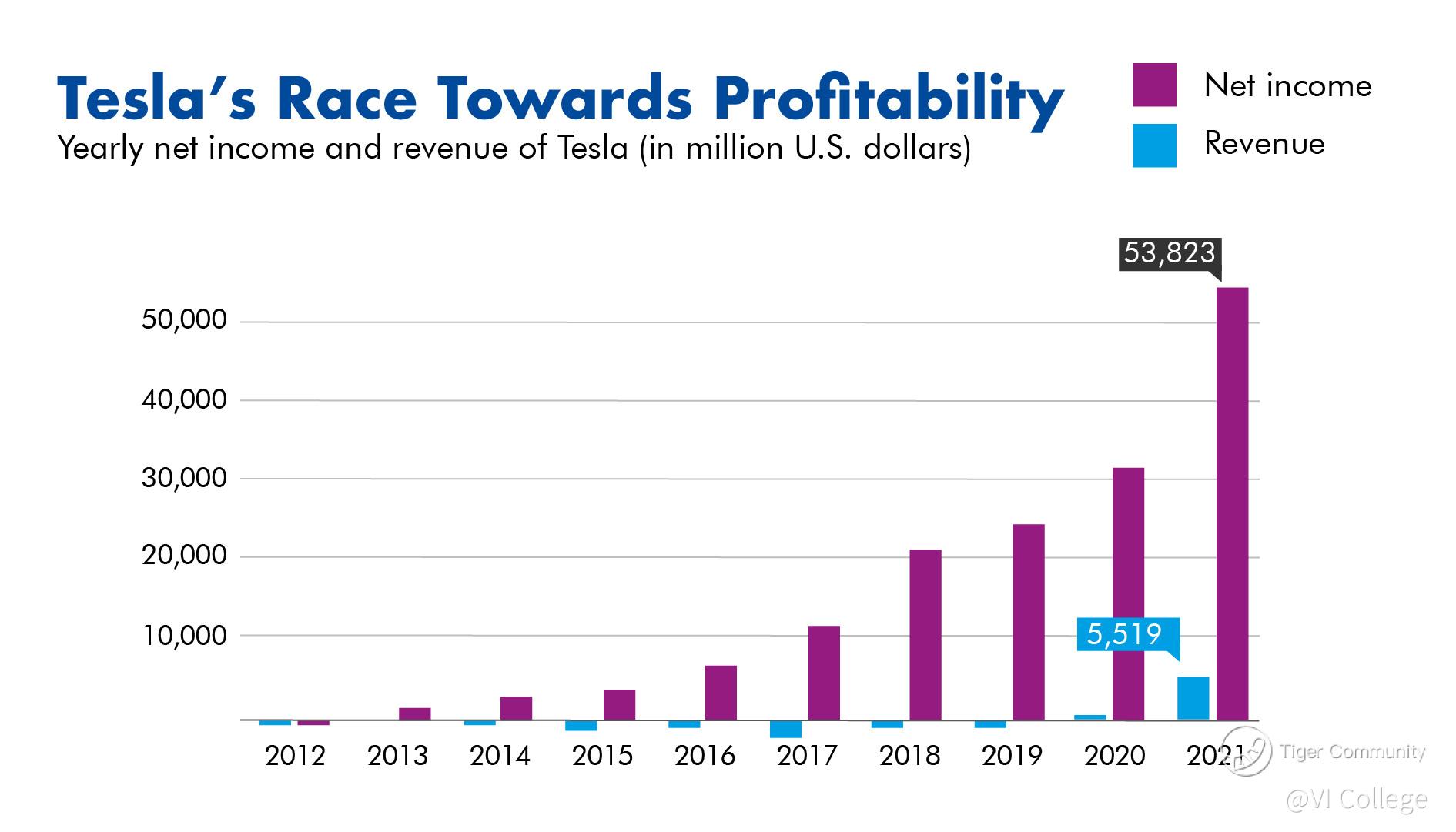 There’s no contest in saying that Tesla is profitable. Just look at its revenue growth since 2012. At that time, the numbers hadn’t even crossed US$1 billion. But at the end of 2021, its revenue was almost US$6 billion.