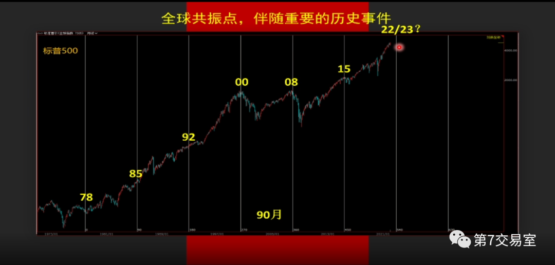 If we divide the S&P in 1978, 1985 and 1992 into equal periods and make fitting corrections, we will find that there will be a large market shock in about 90 months: