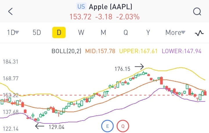$Apple(AAPL)$looks like current level is 50% retracement of the previous low 129 and previous high 176......bullish.......