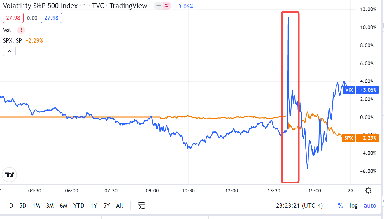 After the Fed announced a 75bps rate hike at 2pm as expected, and the US stock $S&P 500 (.SPX)$ turned from a slight up to a downturn, the trading volume increased, $(SPX)$ fell below 3800 points and closed at 3789 points.
