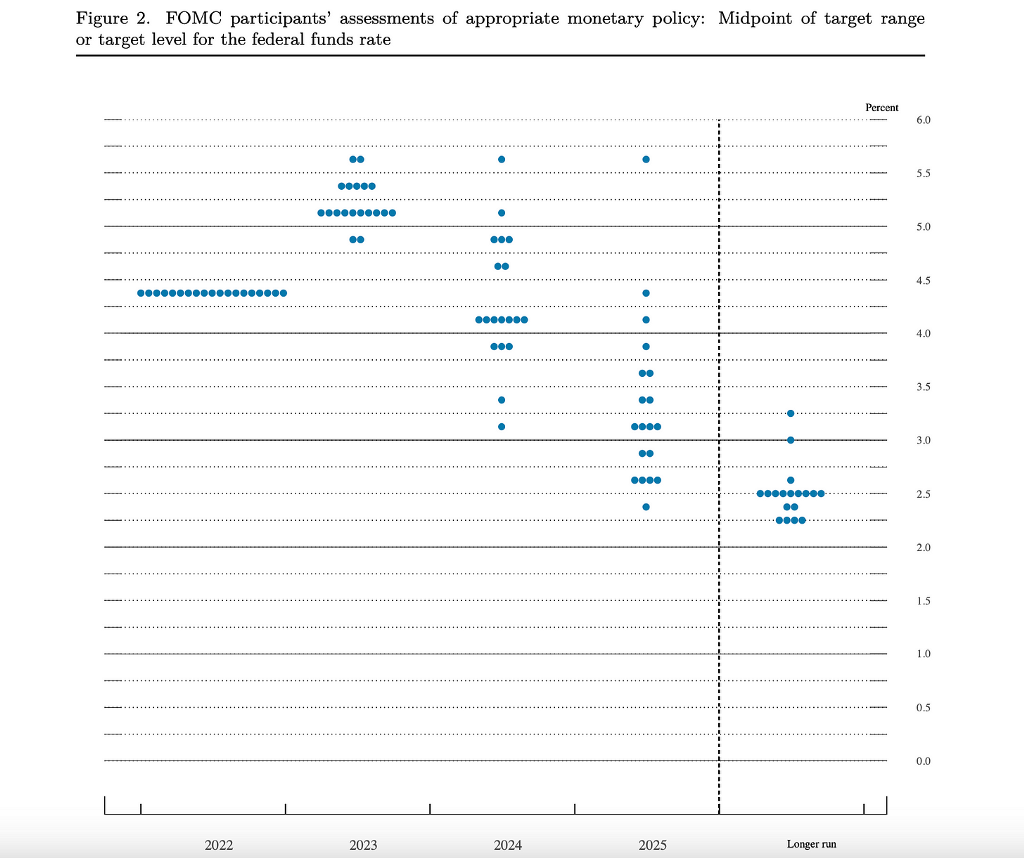 All the 21 members of the FOMC don’t see any cut in the rates in 2023, consistent with the view that the rates will have to remain higher for longer to kill the inflation menace. However, the markets didn’t buy the narrative and predict that the Fed would cut rates by at least 60 bps in H2 2023.