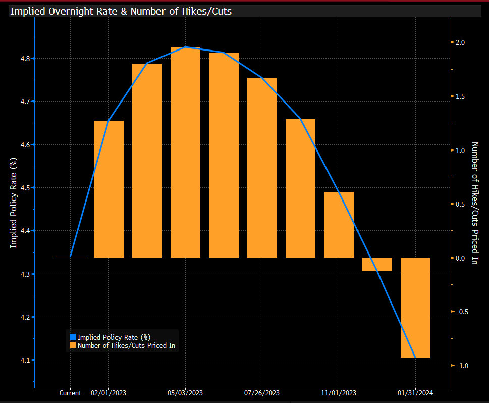 The markets remain unconvinced about the future trajectory of interest rates and assume that a growth scare will lead to inflation cooling off faster than anticipated. Thus, CBs will pivot in the latter half of 2023.