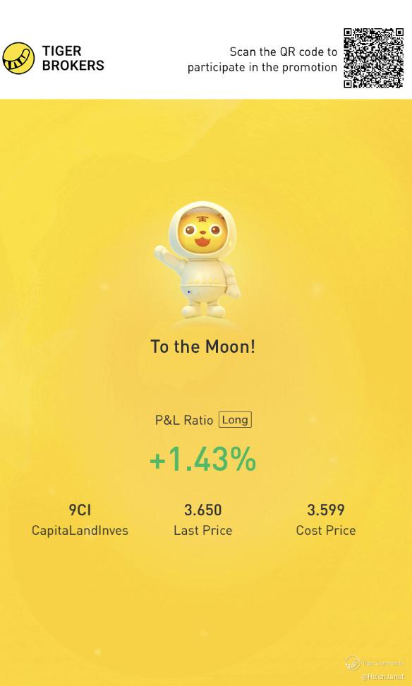 Hopefully the share price of $CapitaLandInves(9CI.SI)$ will continue to go up to the moon 🚀🚀🚀🌙 same as my Tiger emotion.