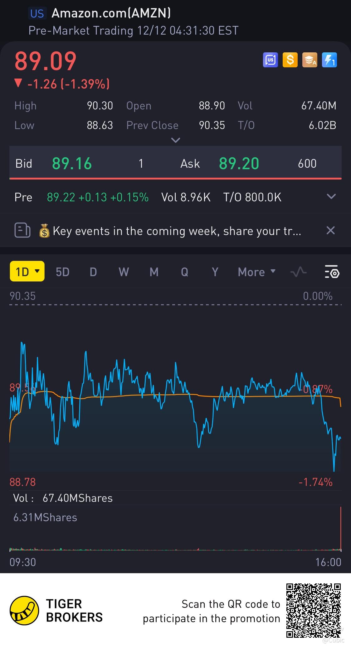 $Amazon.com(AMZN)$ Bearish for Amazon. Shd see recovery from Q3 2023. Please manage your finance wisely and don't put all in stock market now. All the best!!