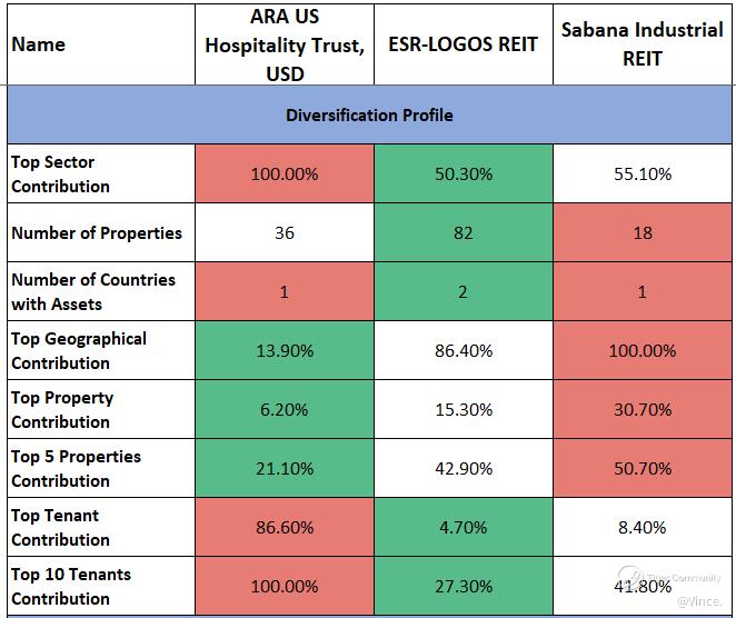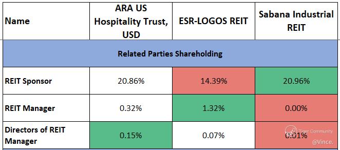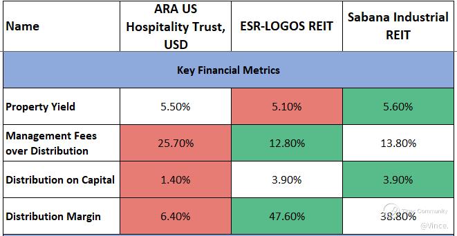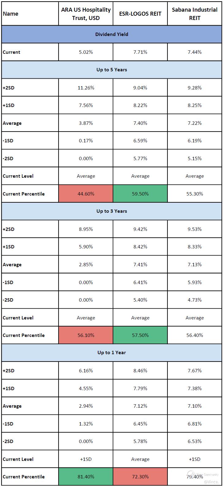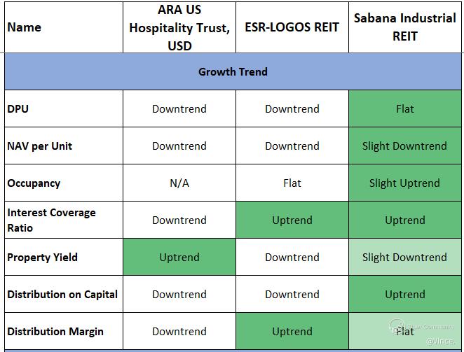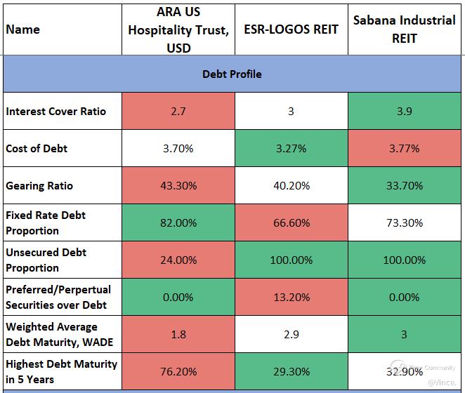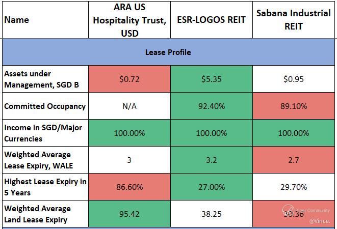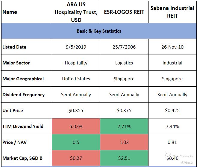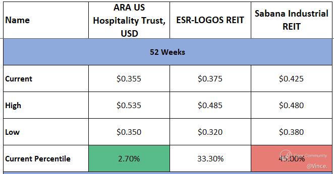 $ARA US HOSPITALITY TRUST(XZL.SI)$ $ESR-REIT(J91U.SI)$ $SABANA SHARI'AH COMPLIANT REIT(M1GU.SI)$