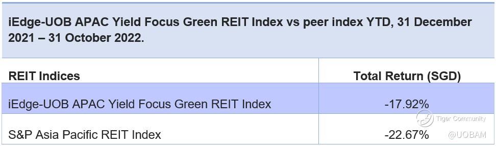 The Index outperformed its non-green peer S&P Asia Pacific REIT Index by 4.75 percent year-to-date (YTD).