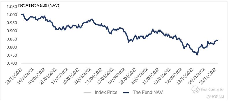 From its inception on 23 November 2021 to 30 November 2022, the Fund tracked the Index very closely with only very minor performance deviation that resulted from fees and initial deployment.