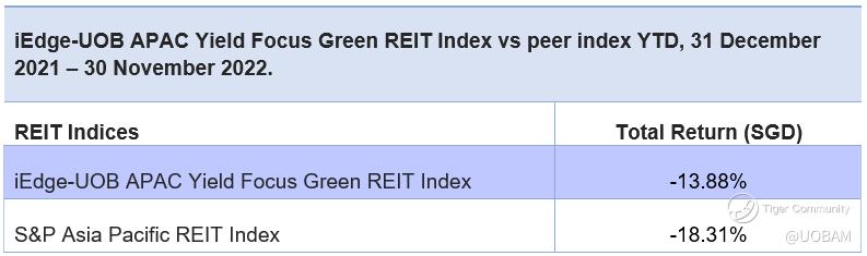 The Index outperformed its non-green peer S&P Asia Pacific REIT Index by4.43 percent year-to-date (YTD).