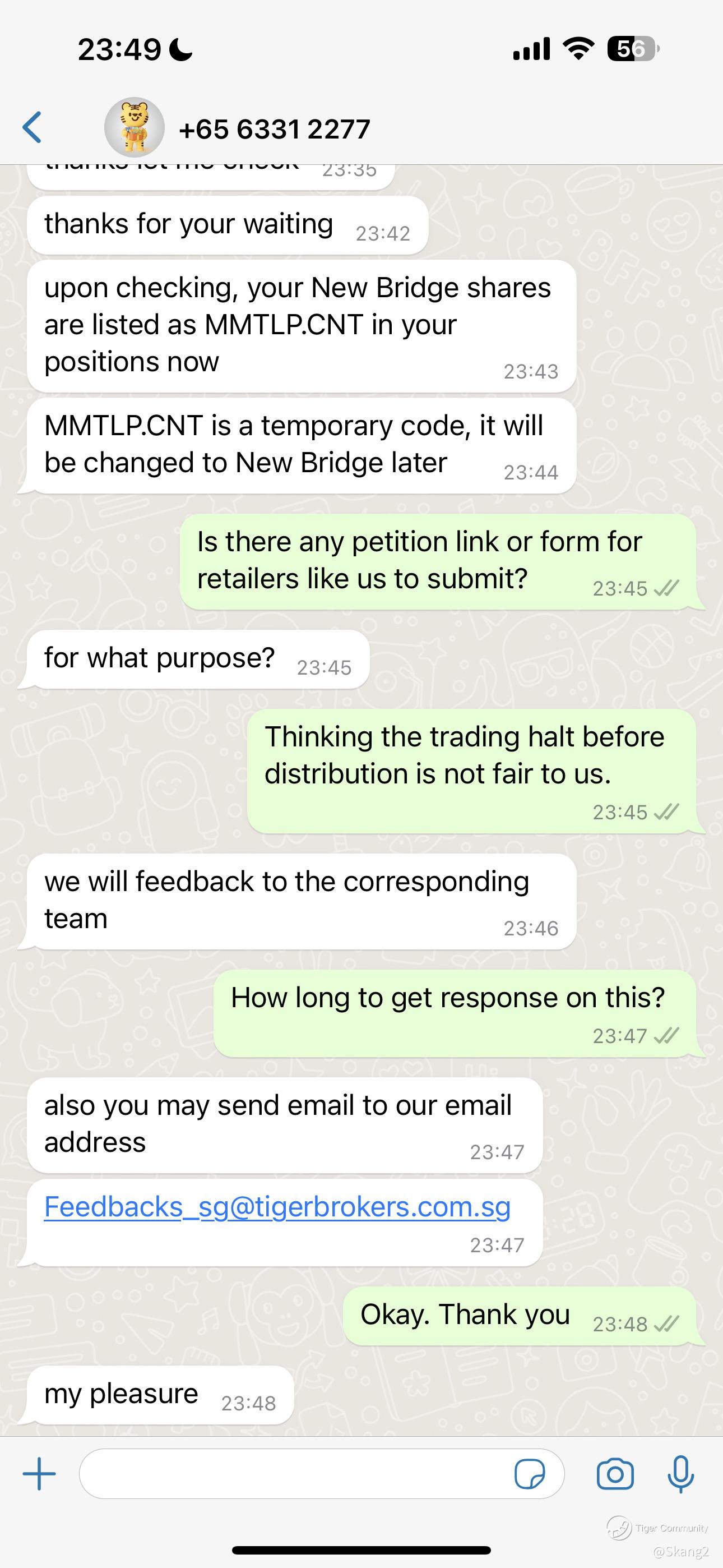 $MMTLP.CNT(MMTLP.CNT)$ I just checked with the tiger's representative, if we have questions, can email to them. As for now, we are granted 'contra' as temporary before converting to New Bridge ( NB )