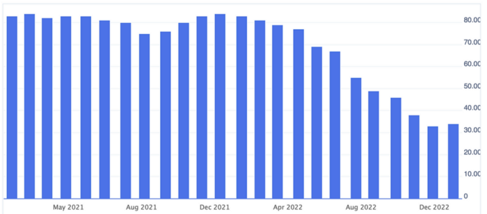 The index fell to 33 in November from 38 in October and is expected to fall further in December to 30, which is close to the low registered at the height of the pandemic in April 2020.