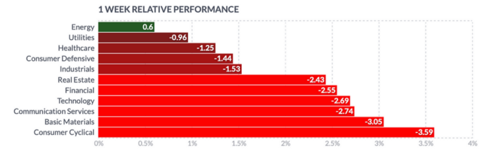 The three best-performing industries for the past week were Energy, Utilities, and Healthcare, which delivered returns of 0.6%, -0.96%, and -1.25%.