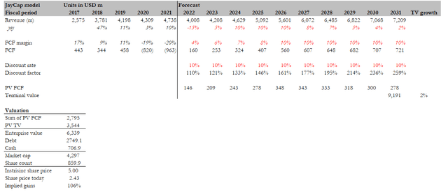 My model has been updated to better reflect FY22 revenue and to allow for the early realization of positive FCF. I still think that IQ is undervalued and that the selloff is just due to "risk-off" situations in the near future.